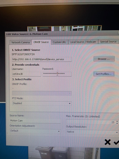 I have just bought a new IP camera from Septekon and want to get it on my Netcam Studio X. It is ONVIF and rtsp compatible, which is why I chose it. I can go to the ONVIF camera adding page in Studio and click ‘browse’ and it appears to find it ok at the address I was expecting. However, when I then click ‘Get Profiles’ nothing happens. There are no selections appearing in section 3. Does anyone who understands about ONVIF know what these profiles are and what I should be seeing, or think of anything I’m doing wrong ? This is the first time I’ve tried to connect an ONVIF compatible camera. The ones that I currently have on Studio are ESP32 cams, connected via the ‘custom URL’ option.